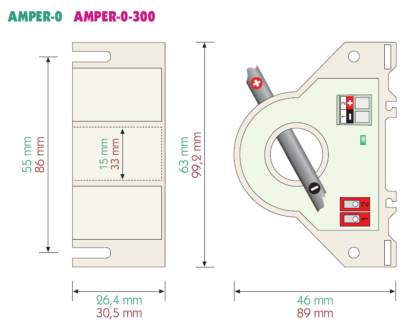 Thanks to its hall effect measurement through hole, it is not necessary to intercept the wire.